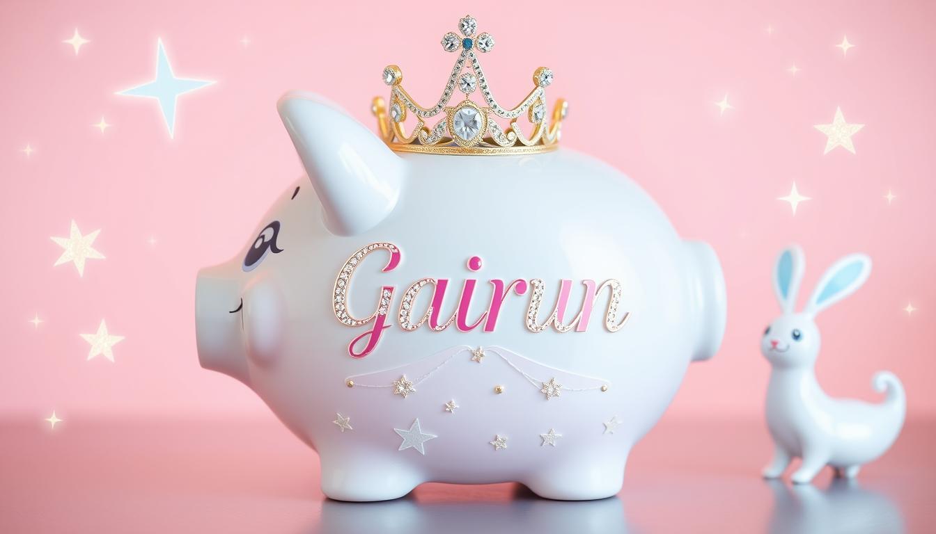 A princess piggy bank is a special ceramic bank that looks great in any nursery. It helps kids learn to handle their money. This makes saving fun and teaches them about money from a young age.