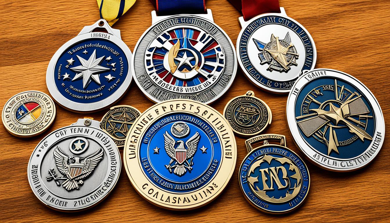 We offer metals like gold, silver, and bronze, along with modern options like nickel. Each metal brings its own benefits in terms of color, weight, and strength. This lets us make medals that meet our clients’ needs and capture the spirit of their achievements with the right custom medal materials.