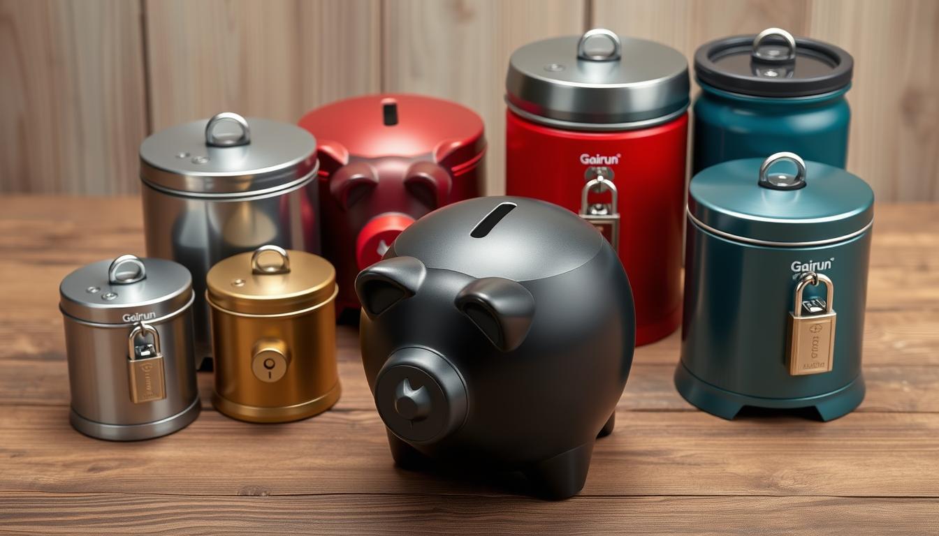 When saving money, security and durability are key. Heavy-gauge steel coin jars and lockable metal cash repositories offer top-notch protection. They keep your savings safe and help you remember to save regularly.