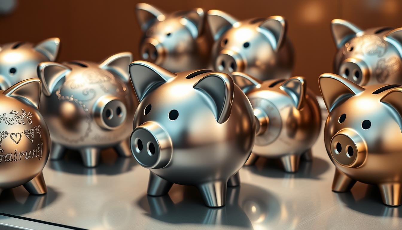 By using personalized metal piggy banks and fun financial activities, we can help our kids save well. This sets them up for a strong financial future.