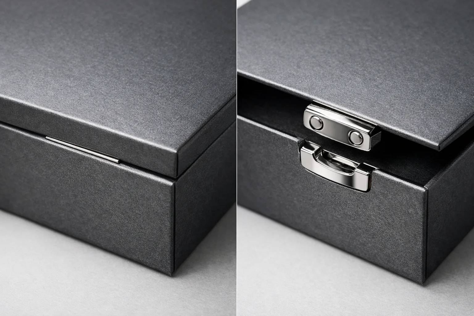 - Minimalist flush integration dominates luxury paperboard boxes—no visible metal, only the sensation of a “magnetic grip.”